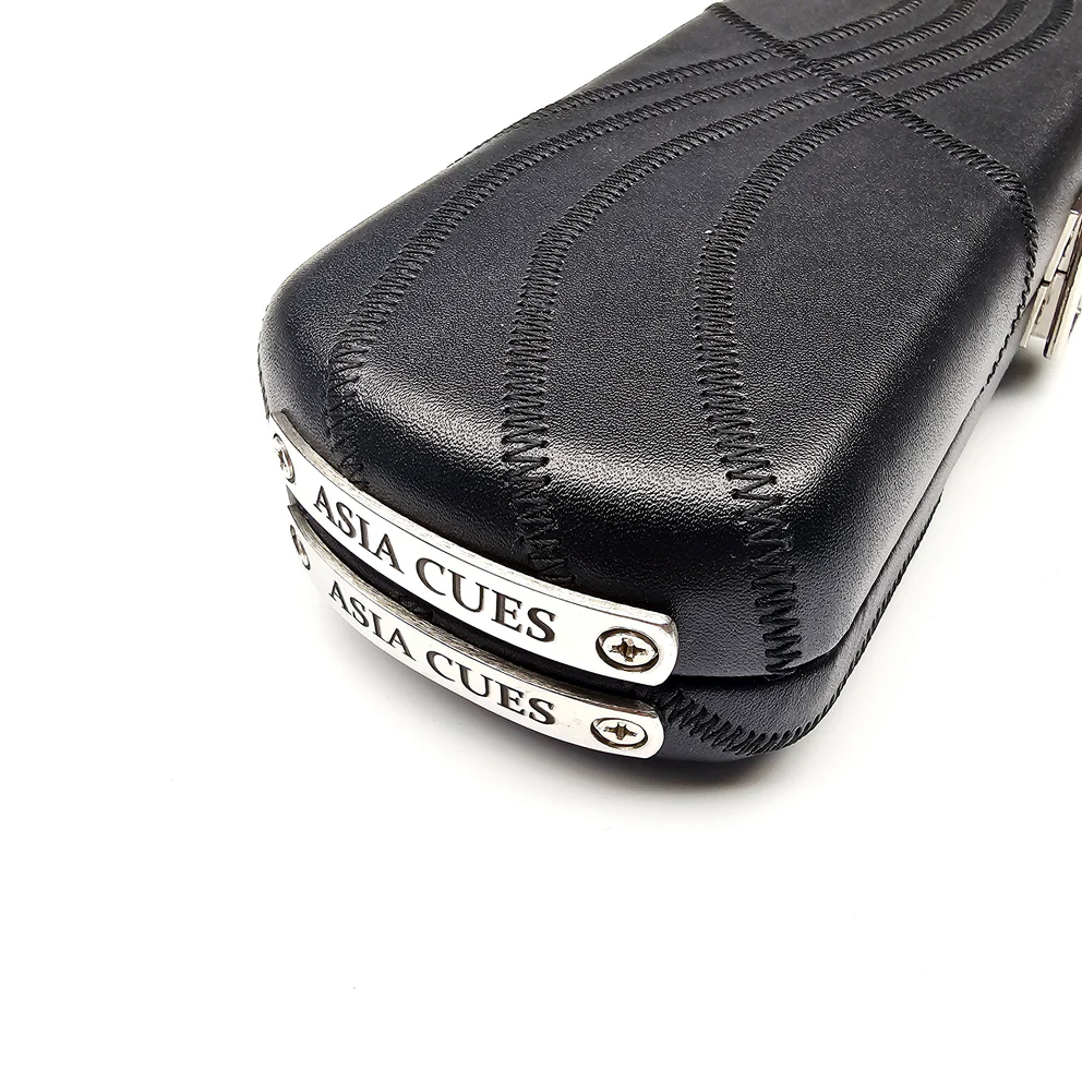 Made from a wooden frame then beautifully upholstered with high quality genuine leather these cases are sure to make a statement. Fitted with chrome hinges and latches to keep the case securely fastened, plus Asia Cues branded chrome end plates to prevent any scuffs, the interior is then padded out with foam and suede to stop your cue from moving around. A separate chalk holder is fitted inside the case, finally the golden ASIA CUES logo is embroidered onto the front to finish off this stunning piece of craftsmanship.